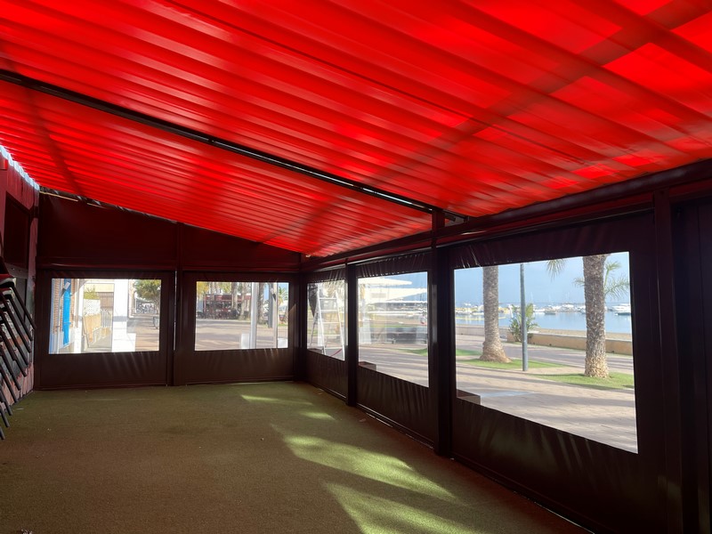 Proyectos de acristalamientos con cortinas de cristal para particulares en viviendas, unifamiliares, chalets, con porches de obra, porches y pérgolas de madera, balcones, áticos, terrazas y patios. También para el sector de hostelería y servicios, bares, cafeterías, restaurantes, hoteles, casas rurales, comercios en Gran Alacant y Arenales del Sol.