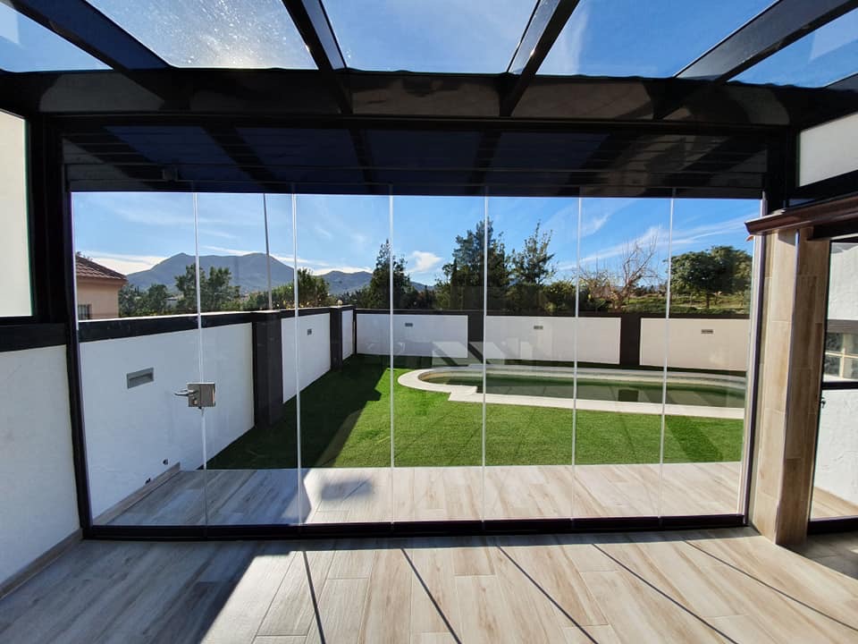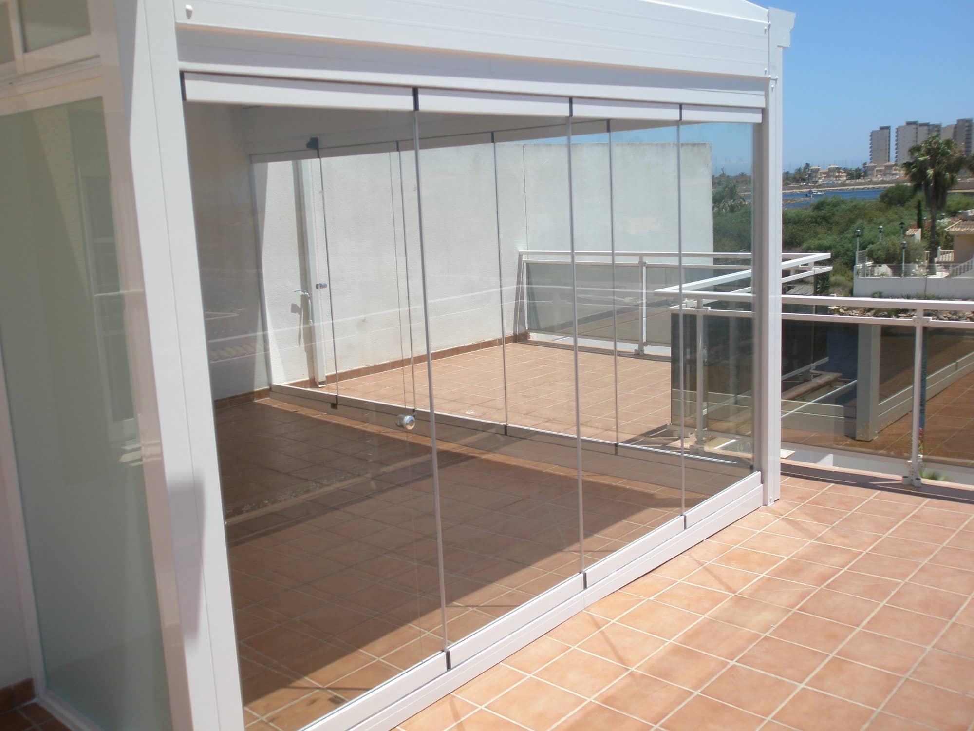 Las cortinas de cristal son un sistema de cerramiento acristalado corredero batiente sin perfiles, sin marcos verticales, todo cristal. Son cerramientos de cristal sin perfiles para terrazas, porches, pérgolas, balcones y áticos.